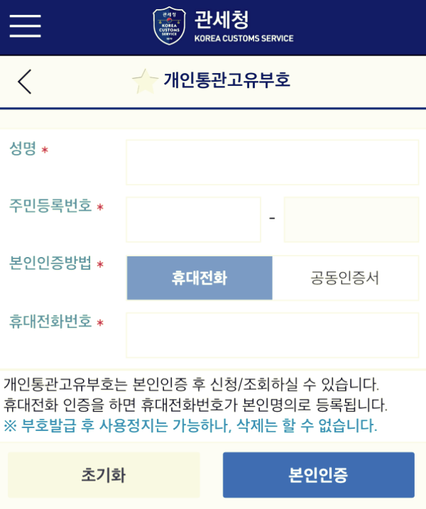1. 모바일 통관번호 발급부터 조회 확인방법