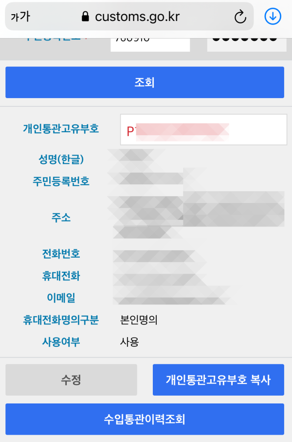 한 번만 가입하고 발급해 두시면은 계속 사용이 가능합니다. 편하게 이용하실 수 있습니다. 개인통관 번호 발급부터 조회까지 확인하는 방법을 알아보았습니다.