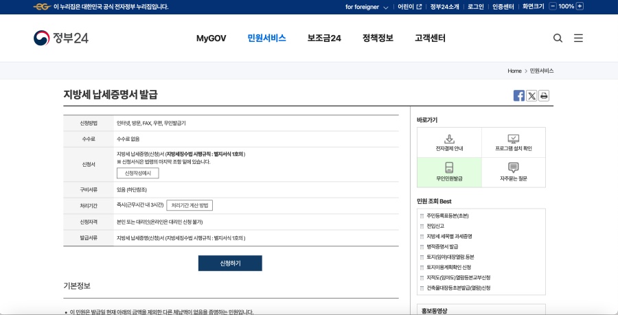 - 납부 상태 확인: 지방세가 완납되지 않았을 경우, 증명서 발급이 불가능합니다. 납부 상태를 반드시 확인하세요.