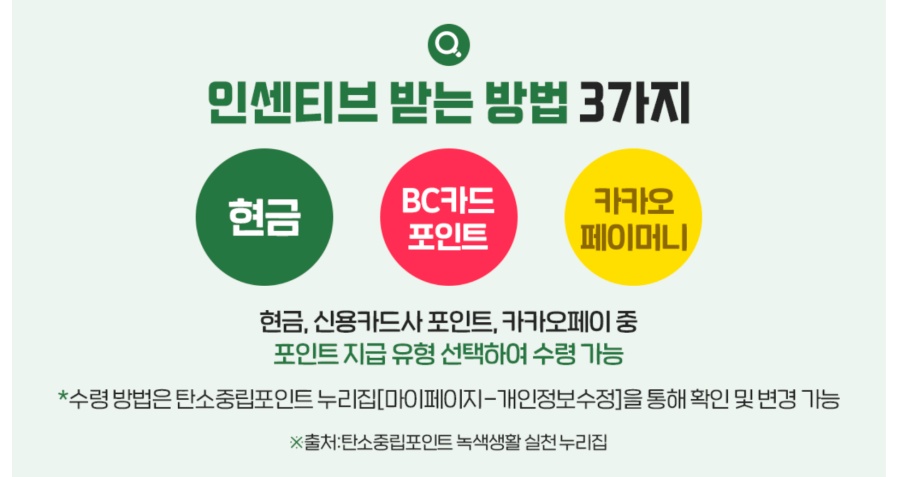 탄소중립포인트 녹색생활 실천을 통해 적립된 포인트는 현금, BC카드 포인트, 카카오페이머니 등 다양한 방식으로 받을 수 있습니다.